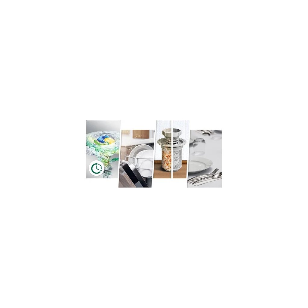 Použití je maximálně pohodlné – stačí kapsli vložit do přihrádky myčky. Rychle rozpustný obal umožňuje okamžitou aktivaci čisticích složek, takže výsledkem je zářivě čisté a lesklé nádobí bez šmouh. |