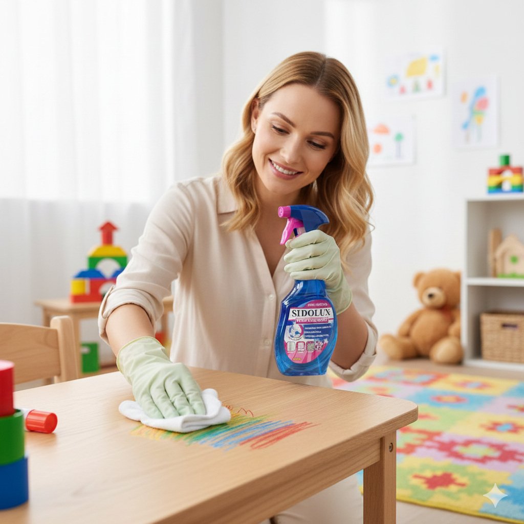 SIDOLUX PROFESSIONAL NA SILNÉ NEČISTOTY DVOUFÁZOVÝ, superhrdinu v čistotě a péči o váš domov! Tento výkonný čistící prostředek nejenom, že odstraňuje silné nečistoty, ale také se hravě vypořádá s nálepkami, propiskami a fixy, které se usadily na nechtěných místech.