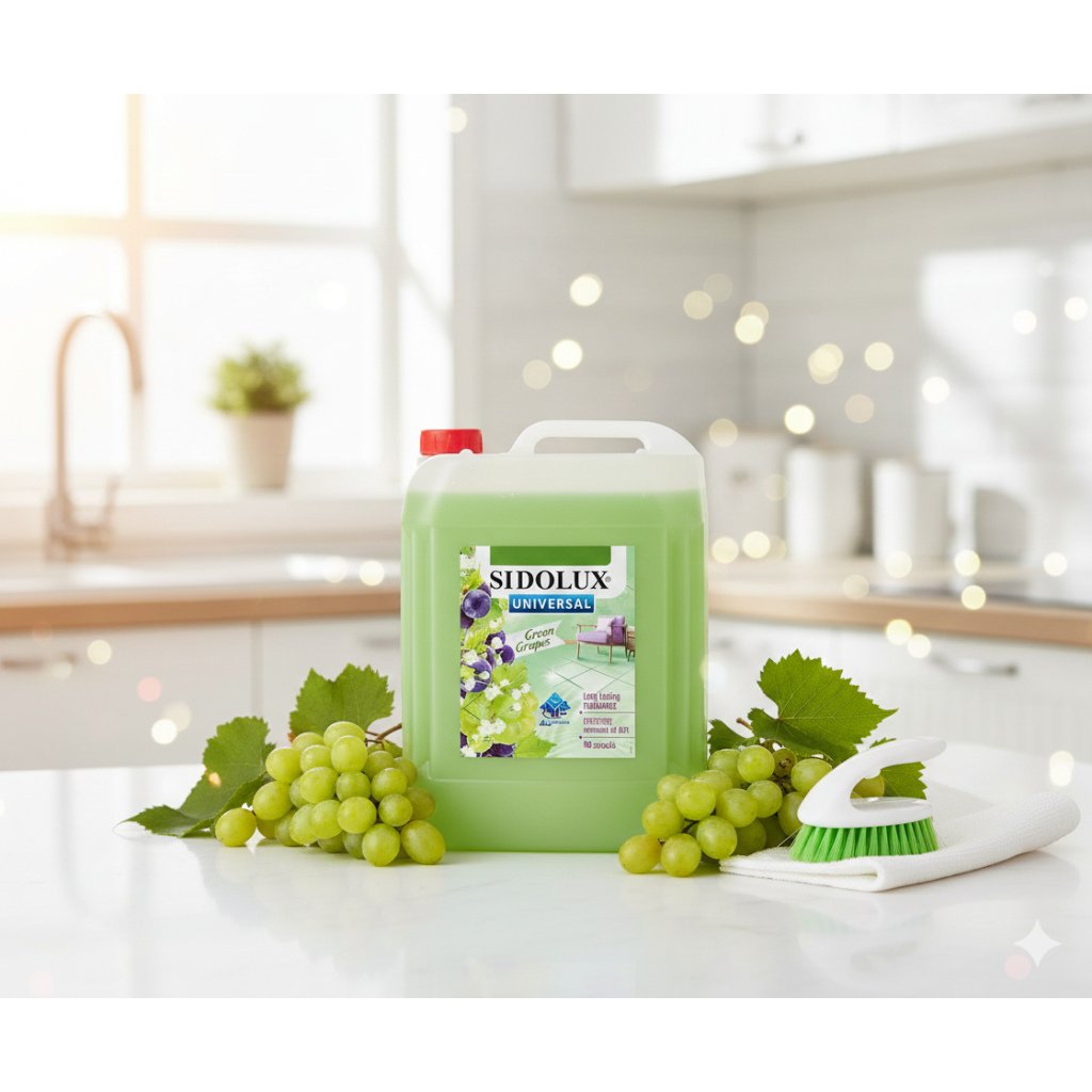 Intenzivní Odstraňování Nečistot: SIDOLUX UNIversal SODA POWER GREEN GRAPES s přídavkem sody efektivně odstraňuje všechny typy nečistot a skvrn, což zajišťuje dokonalou čistotu vašich podlah s minimálním úsilím.